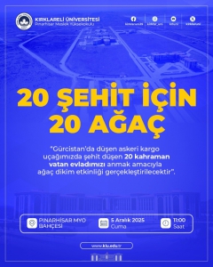 | 20 ŞEHİT İÇİN 20 AĞAÇ ETKİNLİĞİ DÜZENLENECEKTİR 16 Okunma Pınarhisar Meslek Yüksekokulumuz tarafından Gürcistan'da düşen askeri kargo uçağımızda şehit... | ||