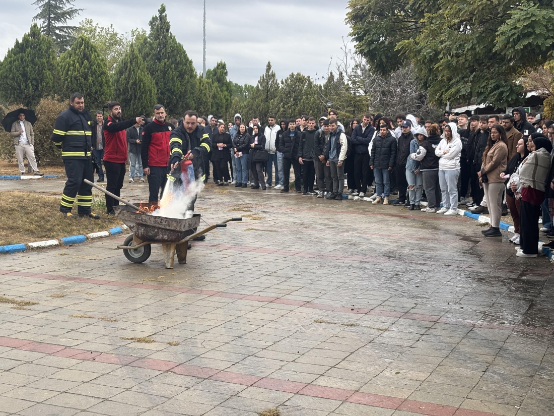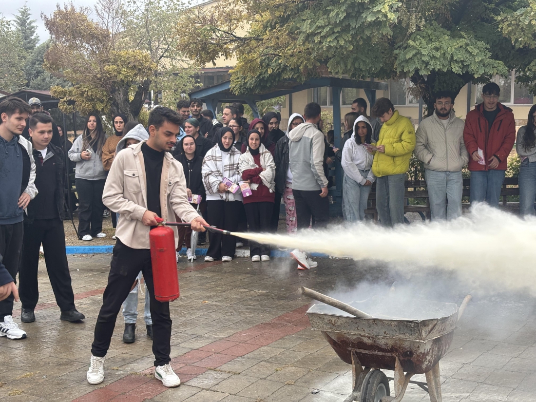 Üniversitemiz Pınarhisar Meslek Yüksekokulu’nda, afet bilincini artırmak ve olası yangın durumlarına karşı hazırlıklı olmak amacıyla yangın ve kurtarma tatbikatı düzenlendi.