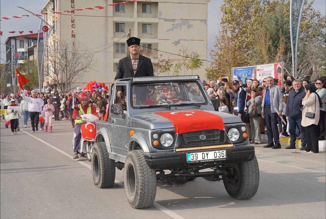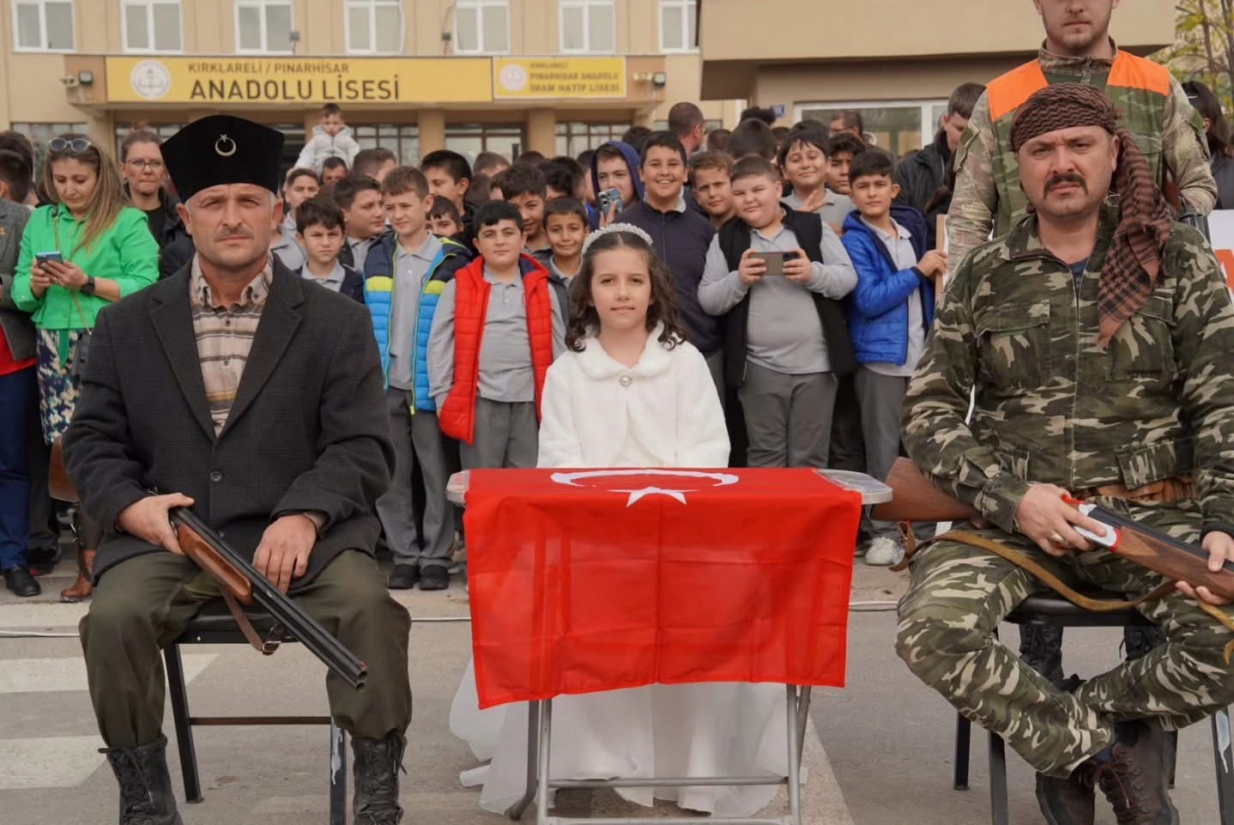 Pınarhisar Avcılar Derneğinin canlandırdığı Kurtuluş Kızı temsiliyle başlayan tören, kortej yürüyüşüyle bayram havasına dönüştü.
